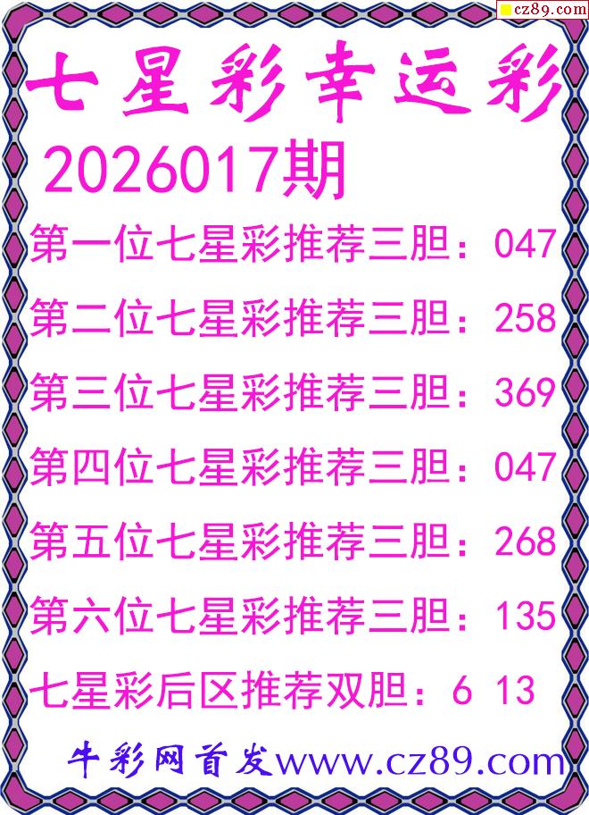 首页 > 七星彩预测 > 七星彩2026017期幸运彩三胆图谜